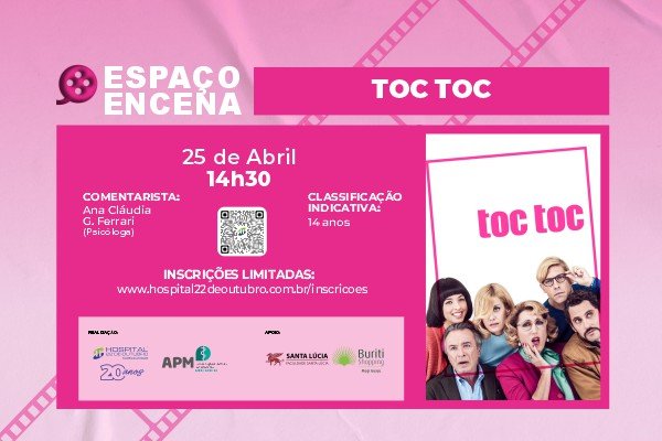 Informações adicionais: Com início em 2010, o projeto Espaço Encena é uma parceria entre o Hospital 22 de Outubro e a APM Mogi Mirim, juntamente com o psicólogo Cleber José Aló de Moraes. O projeto visa promover reflexões sobre saúde mental e bem-estar através da exibição de filmes, analisados sob a ótica da saúde por um profissional convidado. O evento acontece mensalmente no último sábado de cada mês.